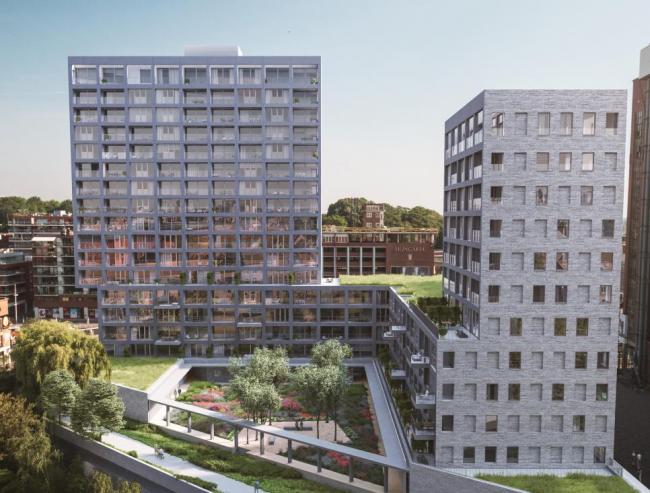 The View is een woonproject gelegen aan de Vaartkom te Leuven, met een prachtige binnentuin gelegen op de ondergrondse parking.